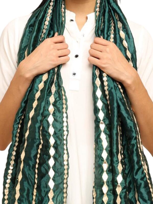 Geometric Embroidered Gotta Patti Dark Green Silk Dupatta