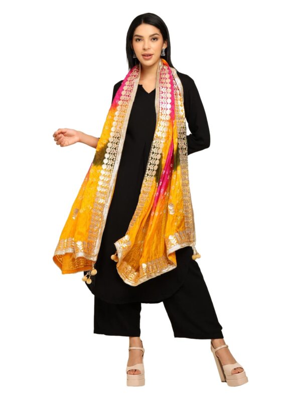 Multi-Shade Bandhani Dyed Silk Dupatta With Gotta Patti Work