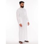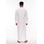 - LIGHTWEIGHT DURABLE FABRIC: This lightweight white fabric is made with a blend of cotton and polyester making it a comfortable jubbah to wear; Finally one thobe that you can enjoy dressing in during the summer days and layering up for the winter month.