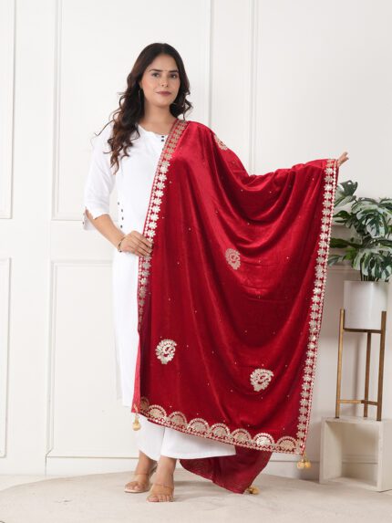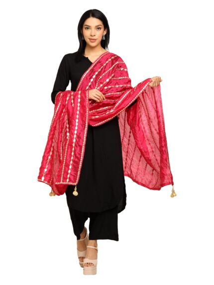 Geometric Embroidered Gotta Patti Dark Pink Silk Dupatta
