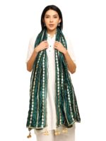 Geometric Embroidered Gotta Patti Dark Green Silk Dupatta