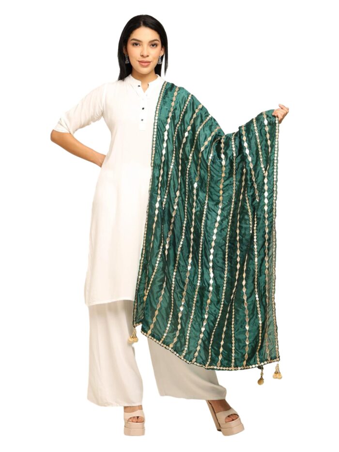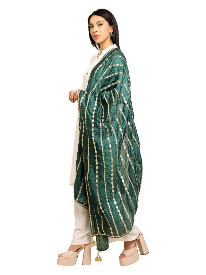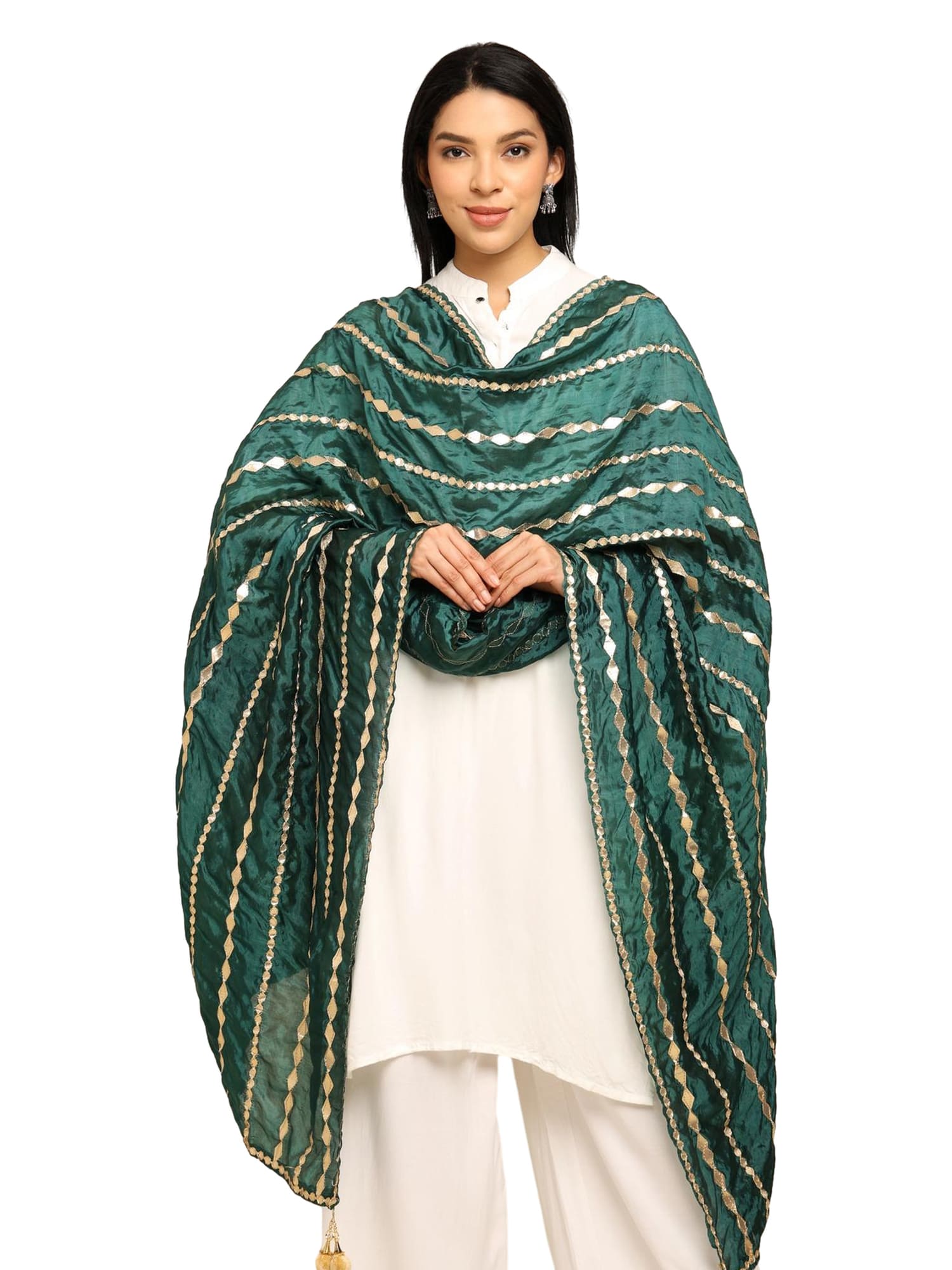 Geometric Embroidered Gotta Patti Dark Green Silk Dupatta