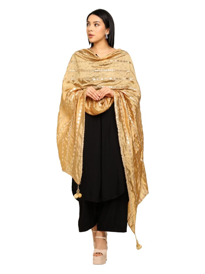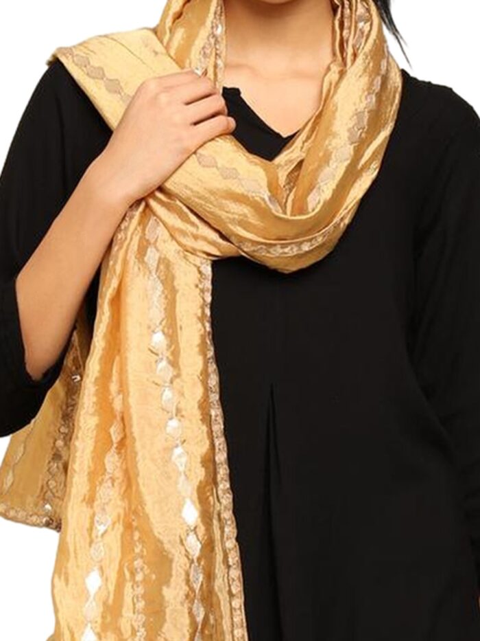 Home Duppata Geometric Embroidered Gotta Patti Golden Silk Dupatta