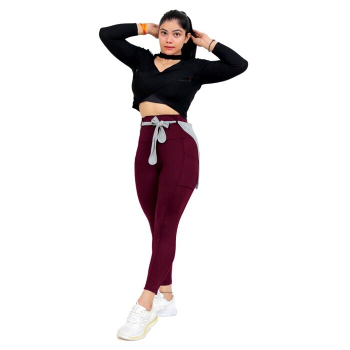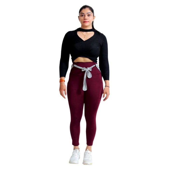 Gym Maroon Legging With Back Supporter