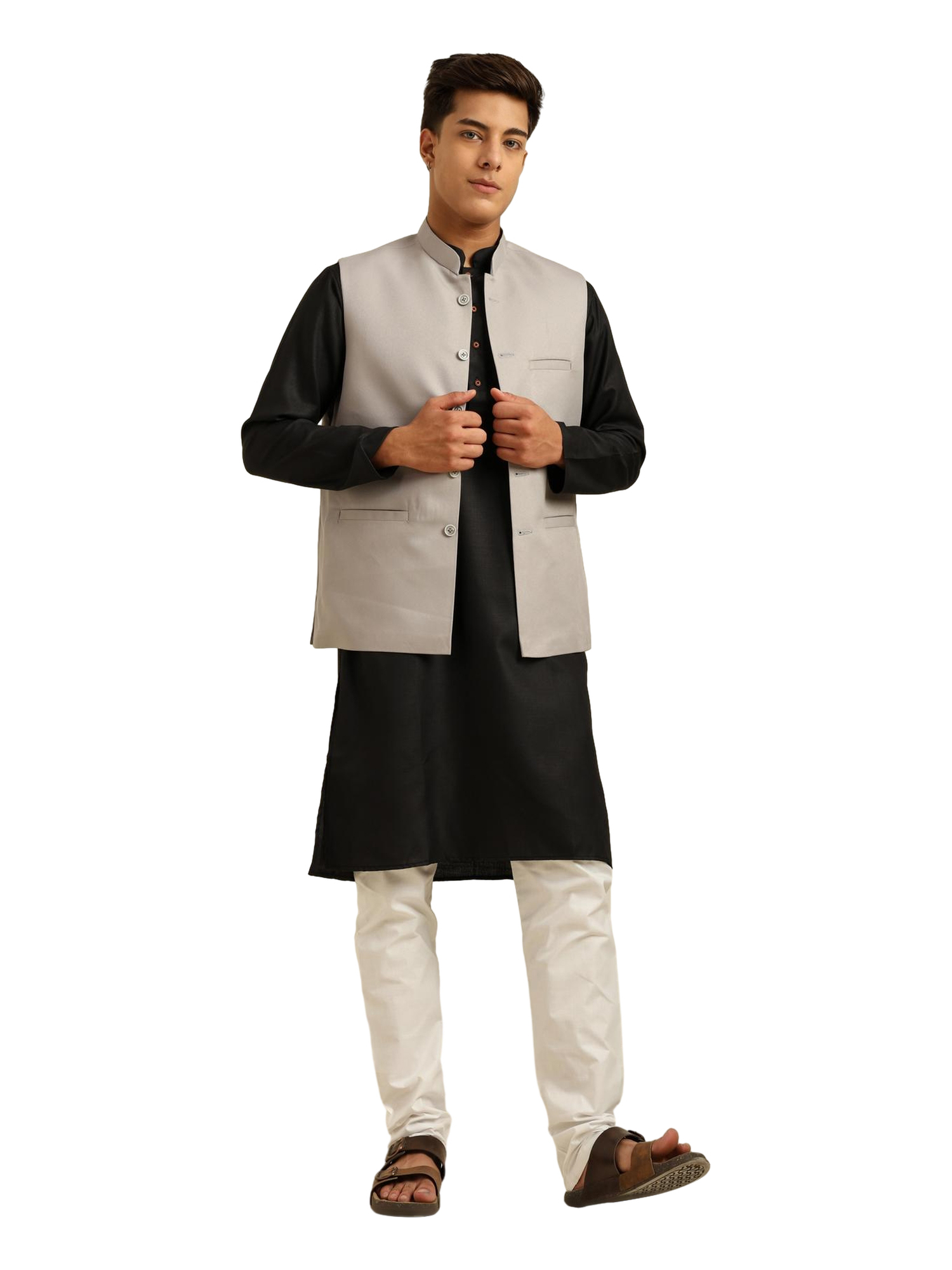 Men’s Black Kurta Pajama with Nehru Jacket Set