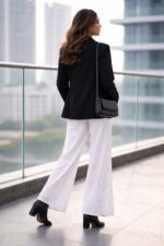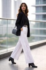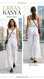 Elevate your Western style with this elegant White palazzo featuring intricate mirror work embroidery and a stylish scalloped hem. Designed with a comfortable elasticated waistband, it offers a perfect blend of tradition and modern comfort—ideal for festive, casual, and fusion wear looks.