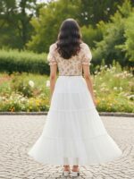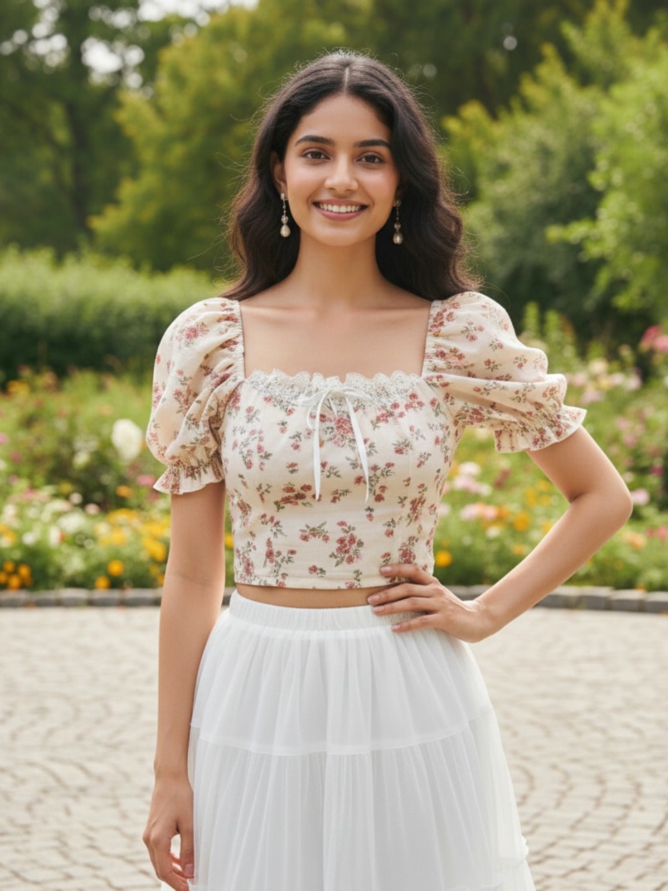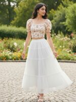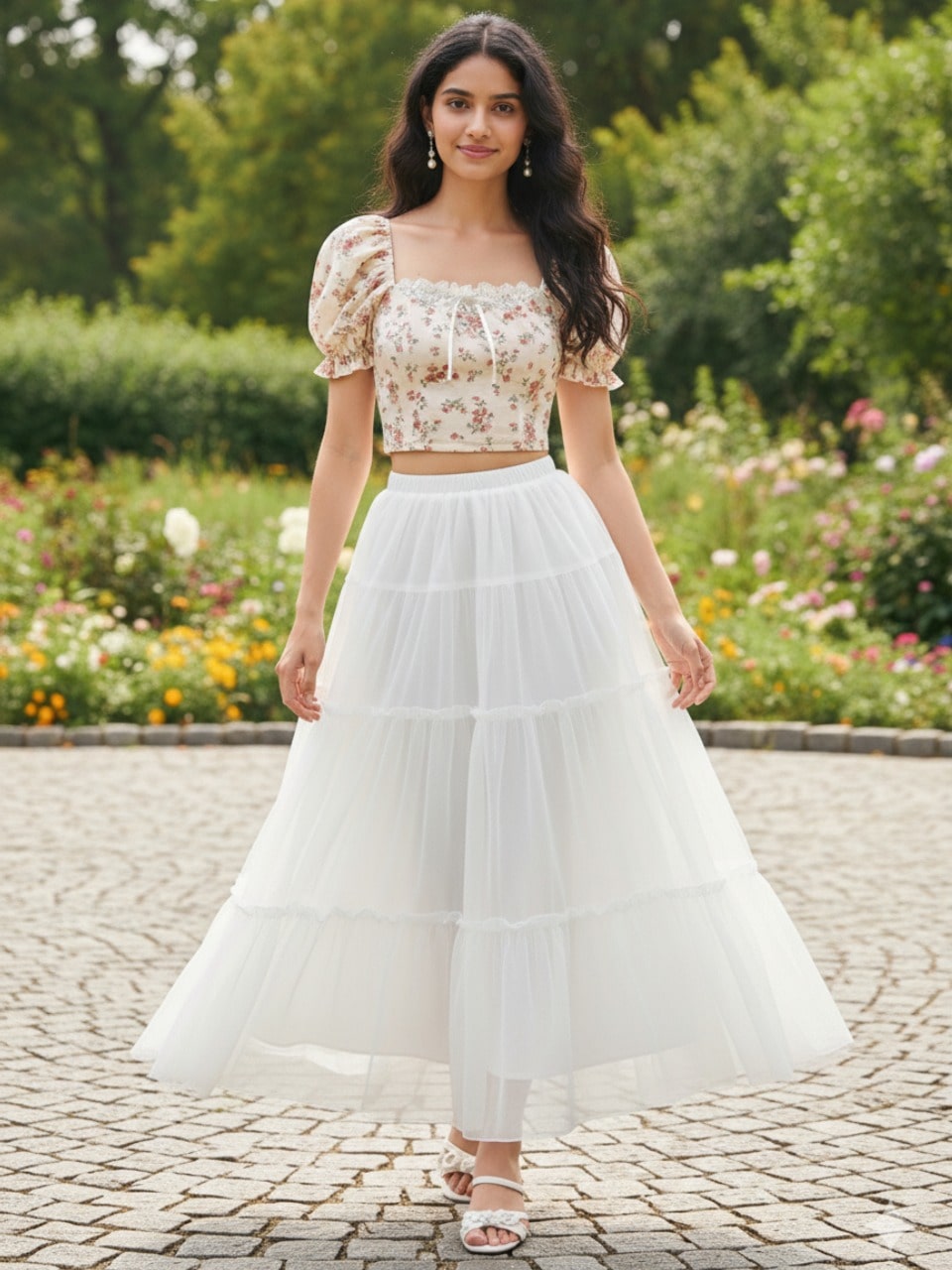 •Style Tip: Pair it with embroidered crop tops or printed blouses for a graceful look