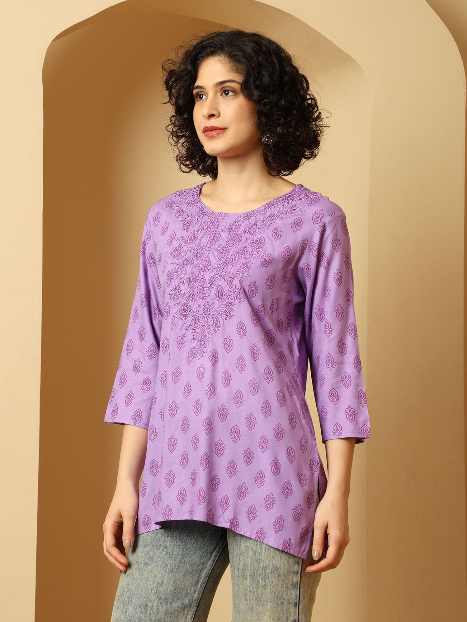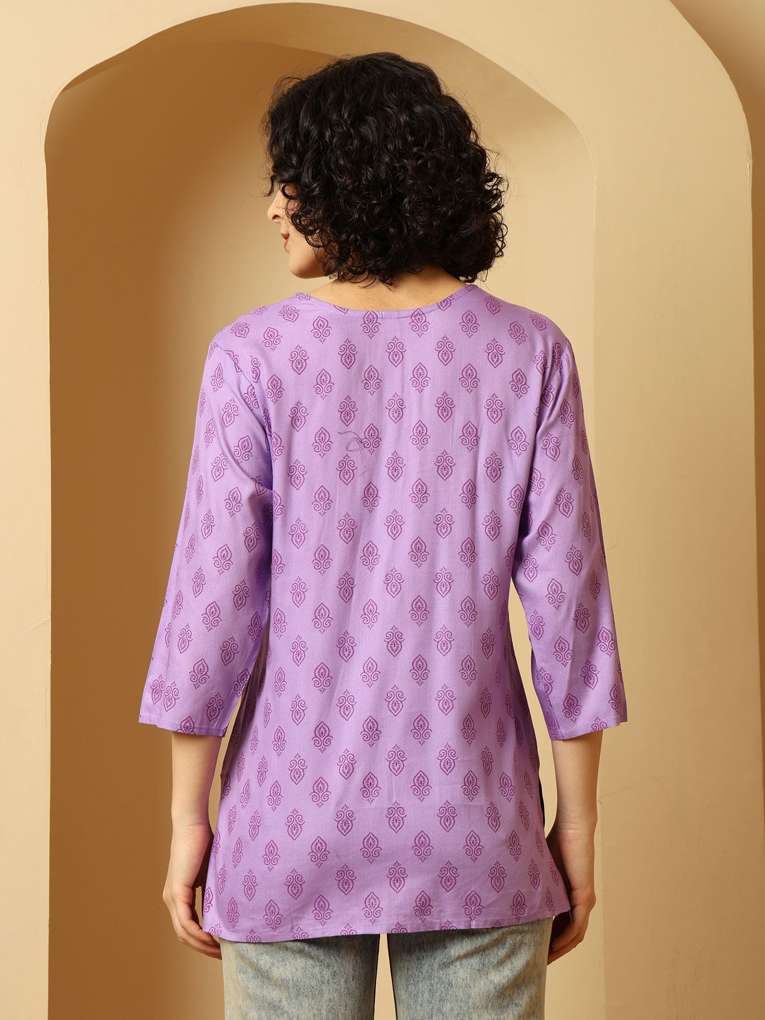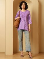 Urban Kanya Purple Cotton Embroidered Short Kurti – Elegant Daily Wear