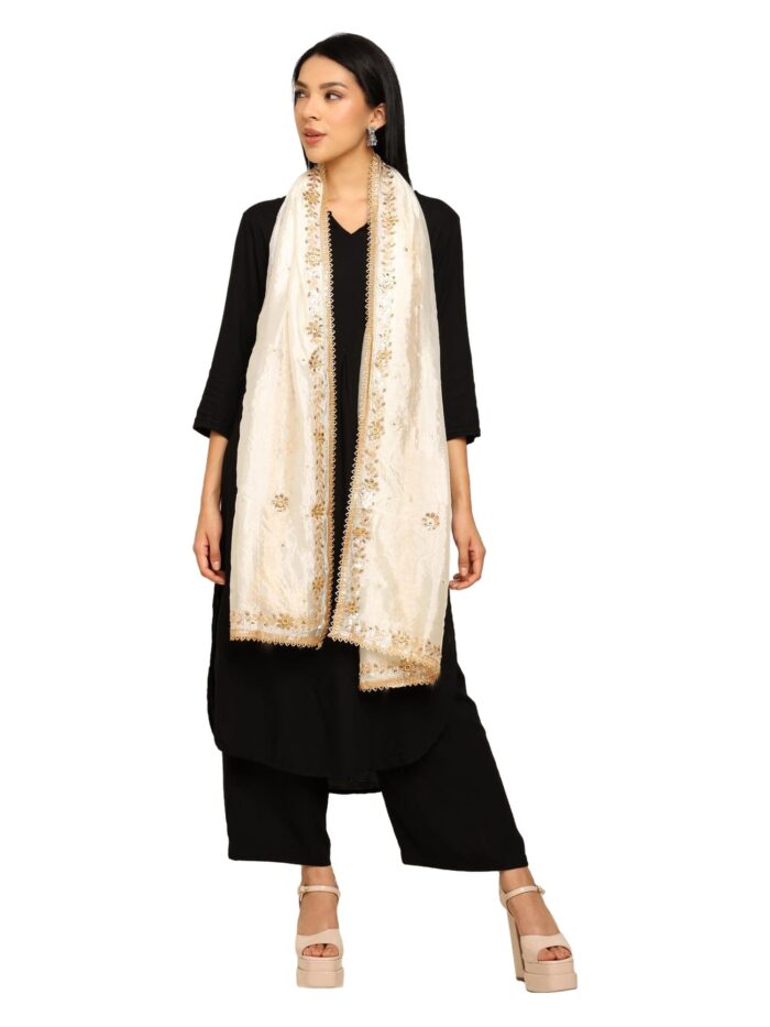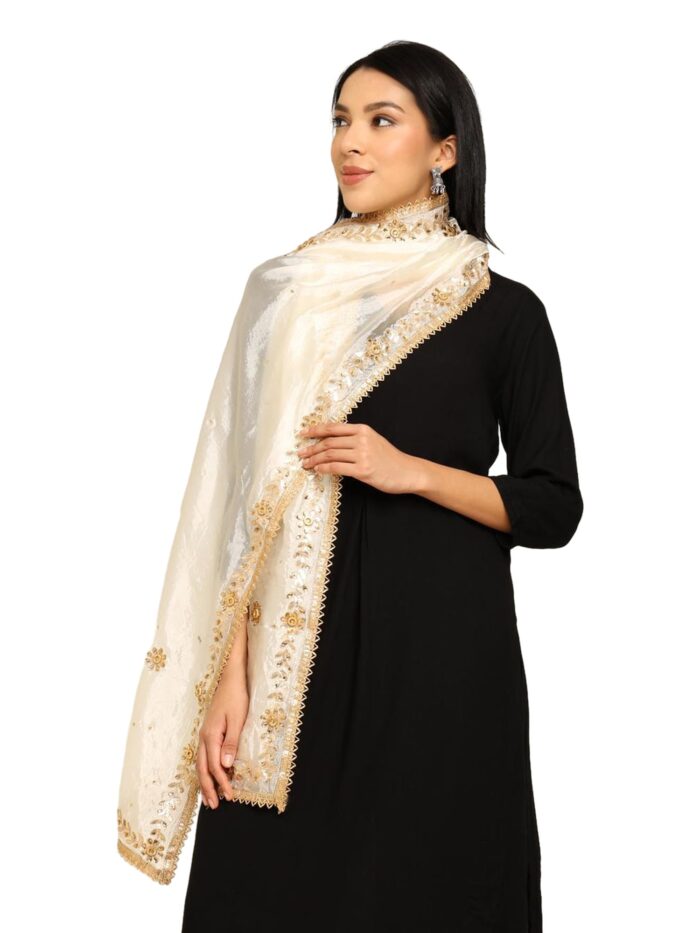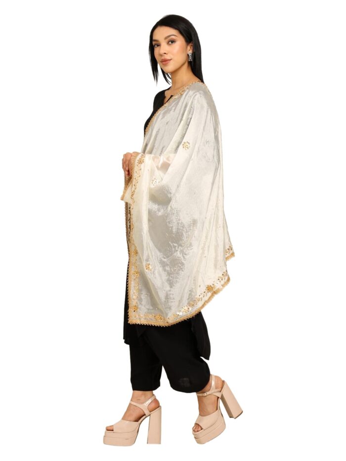 What makes this dupatta truly special is the intricate Gota Patti work, a traditional craft known for its delicate detailing and festive glow. Each pattern reflects the beauty of Indian artistry, giving the dupatta a unique touch of royalty and elegance. Whether you’re dressing up for a wedding, a cultural function, a festive gathering, or simply want to elevate a simple kurta look, this dupatta transforms any outfit into something extraordinary.