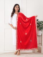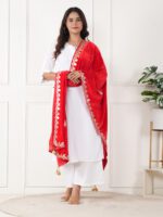 URBAN KANYA Women’s Semi-Silk Rakhi Chandla Red Dupatta Gota Patti Work