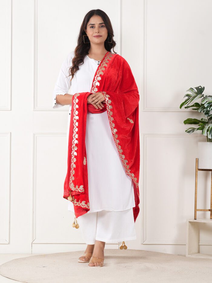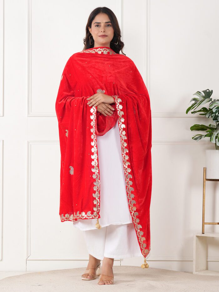 Style Note- Welcome to our collection of Velvet Embroidery Dupattas, where luxury meets tradition in a seamless blend of artistry and grace. Drawing inspiration from the rich heritage of Indian and Mughal craftsmanship, these dupattas are more than just fabric; they are timeless symbols of elegance, refinement, and cultural pride.