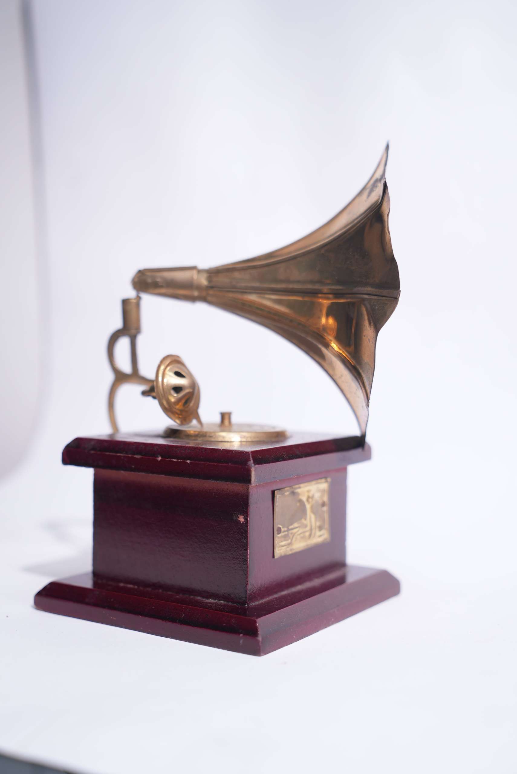 Style Note- Made Brass & Wood Vintage Gramophone Table Decorative Showpiece.