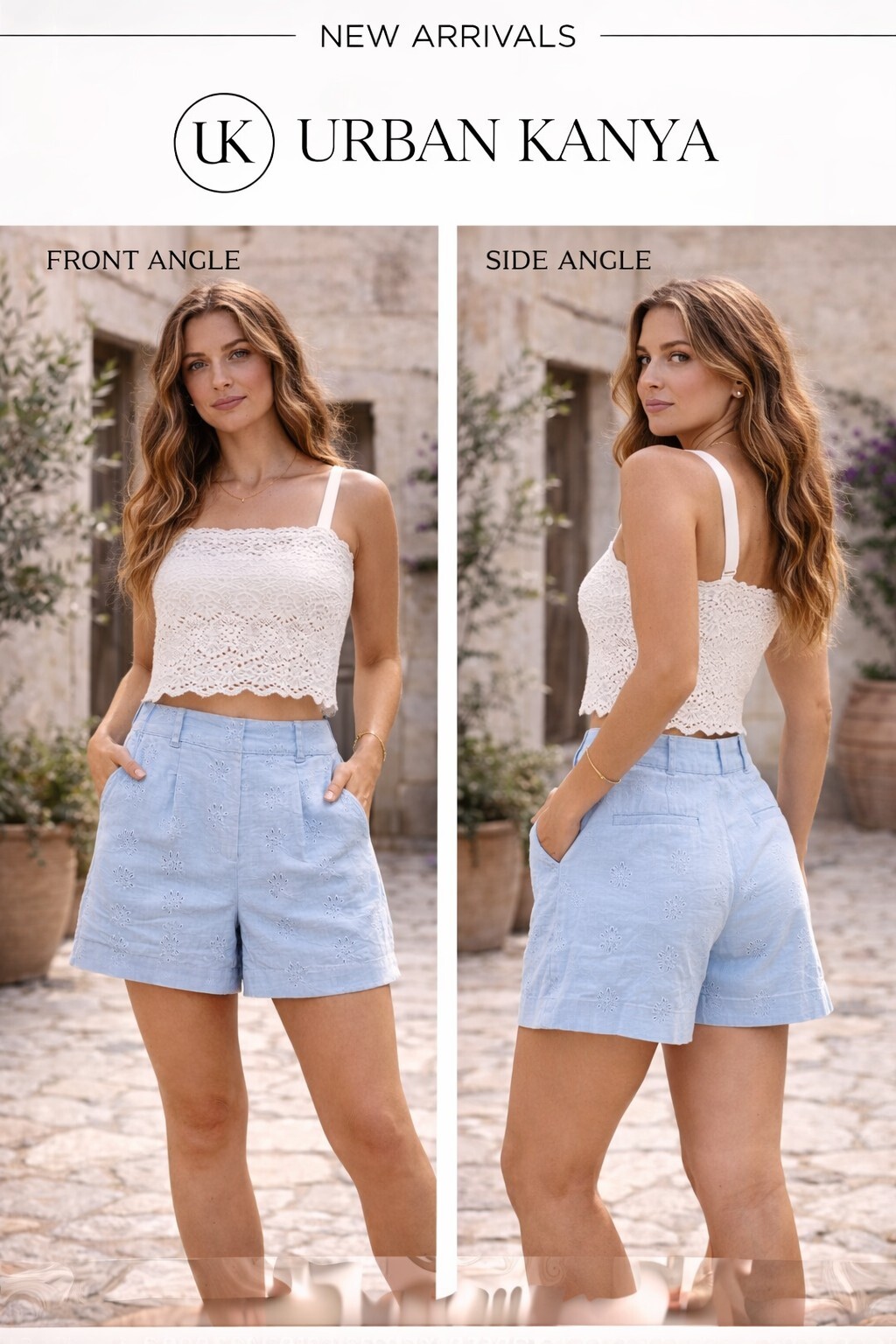 Refresh your summer wardrobe with these effortlessly stylish light blue embroidered cotton shorts, designed for comfort and everyday elegance. Crafted from lightweight and breathable cotton fabric, these shorts keep you cool and relaxed even on warm days.