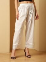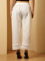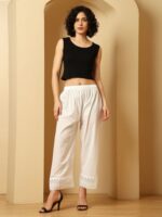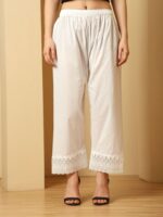 Women White Cotton Palazzo with Scalloped Lace Embroidered Hem | Straight Fit Ethnic Palazzo ₹1,439.00 Original price was: ₹1,439.00.₹575.00Current price is: ₹575.00.